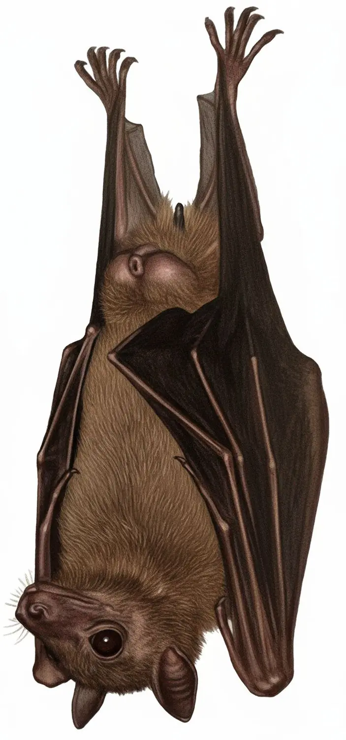 | Color: | The pelage is smooth and soft, with a uniform gray-brown color on the dorsal side. The neck, back, and ventral fur are relatively lighter, ranging from light gray-brown to tea-yellow. Juvenile bats have a darker overall fur color, appearing as gray-black. |
