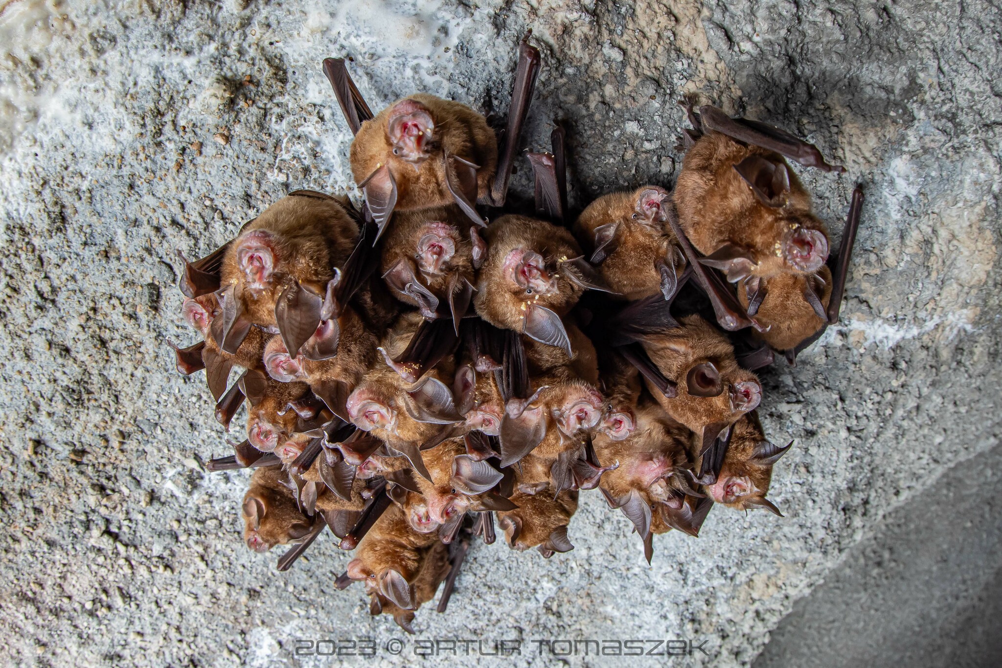 | 繁殖: | 交配期在九至十一月,延遲生育至來年春季懷孕,在五月分娩,通常產一隻。在繁殖季時,雌雄蝠會分棲,雌蝠會大量集結組成育幼群,而雄蝠則會獨棲或以小群聚棲。 |
